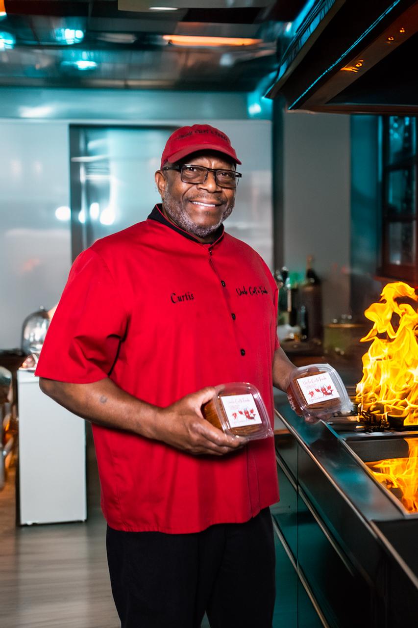 For Curt, cooking was always more than a hustle — it was a way to connect with people through flavor. Over the years, he expanded from barbecue to packaged products, starting with his now-famous Cajun Crackers, which quickly developed a cult following. Drawing from his father’s seasoning blends, Curt perfected his All-Purpose Seasoning Rub for meats, seafood, soups, and more. And his signature Smoked Chicken Salad — along with smoked salmon and shrimp variations — has become one of his most talked-about creations.